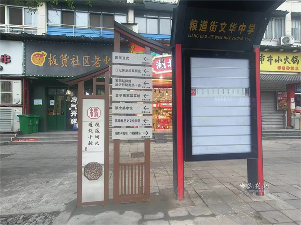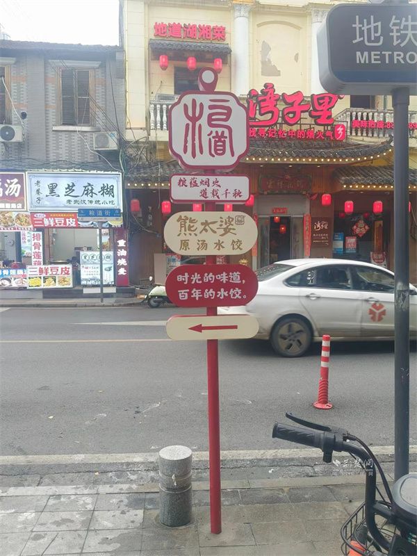 為幫助食客高效探索糧道街“美食宇宙”,街區(qū)在主要入口,設(shè)置了信息豐富的美食總覽立牌,標(biāo)注出特色店鋪。街巷內(nèi)部,則布設(shè)了風(fēng)格統(tǒng)一、指向明確的路口美食導(dǎo)向牌,形成清晰的尋味指引網(wǎng)絡(luò),實(shí)現(xiàn)“一圖在手,吃遍糧道”。這些美食導(dǎo)覽圖有效引導(dǎo)了人流,分散了聚集壓力,也讓美食探索變成了一場(chǎng)輕松有趣的“尋寶”之旅。