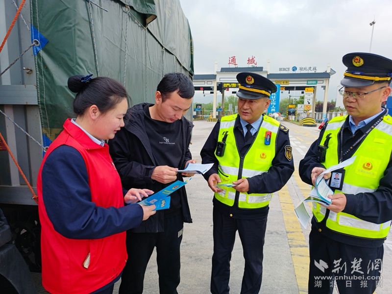 荊楚網(wǎng)(湖北日報網(wǎng))訊(通訊員 徐勝)4月15日,全民國家安全教育日當(dāng)天,湖北交投武黃運營公司通城管理所的 “瑤鄉(xiāng)雋妞” 志愿者身著紅馬甲,攜手湖北省交通運輸廳綜合執(zhí)法總隊路政五大隊隊員,以鄉(xiāng)音宣講、入戶幫扶等貼近群眾的方式,將國家安全知識與平安暖意送到司乘人員和鄉(xiāng)村百姓心間。
