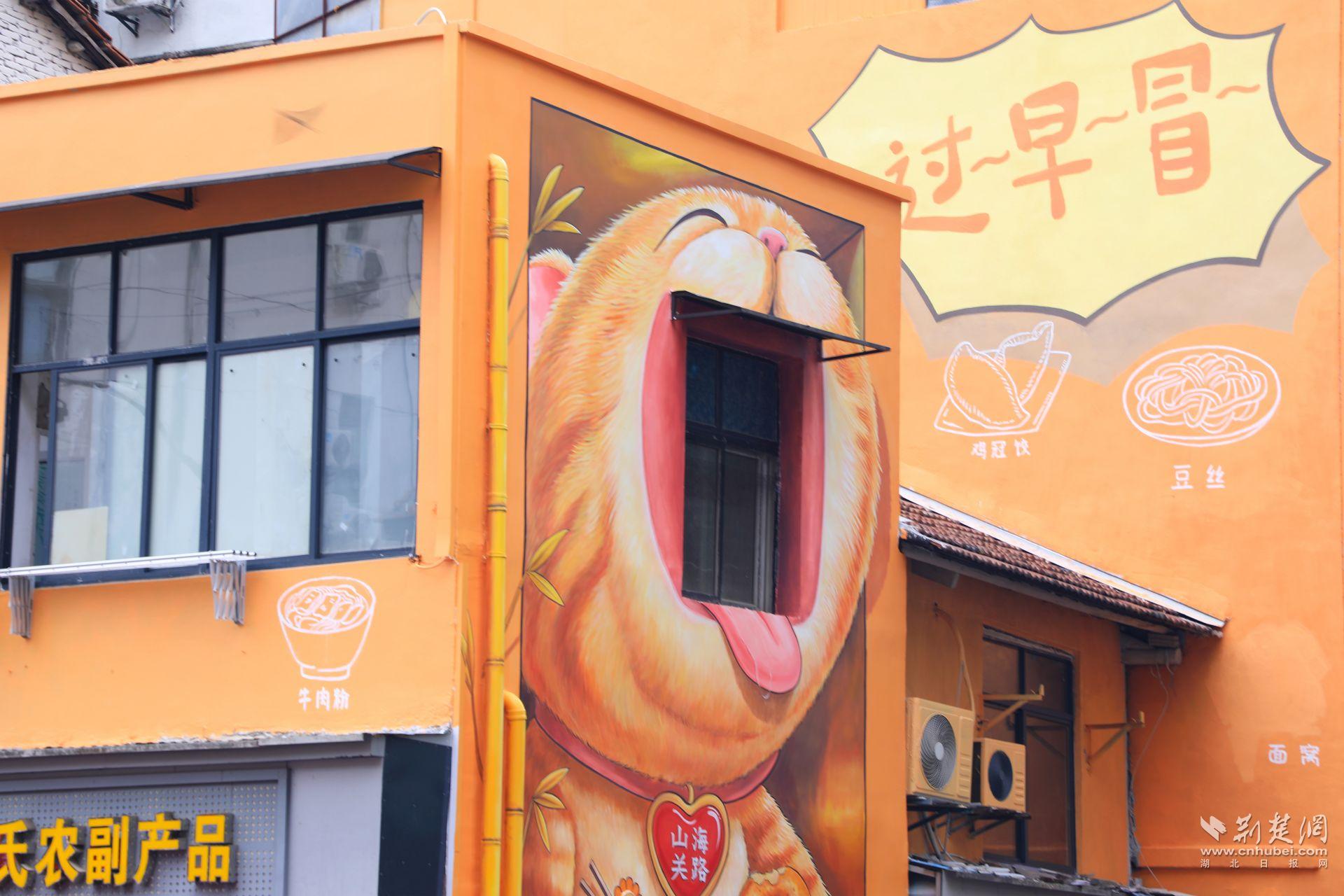 據(jù)了解,該墻繪的誕生源于多方共議。此前,在市、區(qū)城管部門(mén)統(tǒng)籌下,永清、四唯街組織居民、商戶及游客代表開(kāi)展座談,廣泛收集意見(jiàn)建議。結(jié)合山海關(guān)路“過(guò)早一條街”的美食特色和武漢方言文化,最終確定以“過(guò)早貓”為主題,并依據(jù)街區(qū)建筑風(fēng)貌進(jìn)行藝術(shù)創(chuàng)作與點(diǎn)綴,實(shí)施微改造。此舉不僅為老街增添了藝術(shù)氣息與創(chuàng)意活力,也收獲了周邊商戶、居民和游客的普遍好評(píng)。