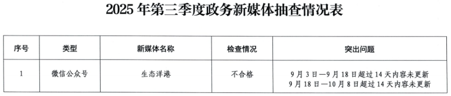 荊楚網(wǎng)(湖北日報網(wǎng))訊(記者 呂鑒蕾)記者24日獲悉,日前,黃石市政務(wù)服務(wù)管理局組織開展了2025年第三季度全市政府網(wǎng)站與政務(wù)新媒體檢查。其中,黃石市經(jīng)信局官網(wǎng)和“生態(tài)洋港”公眾號因日常維護管理不到位被點名。