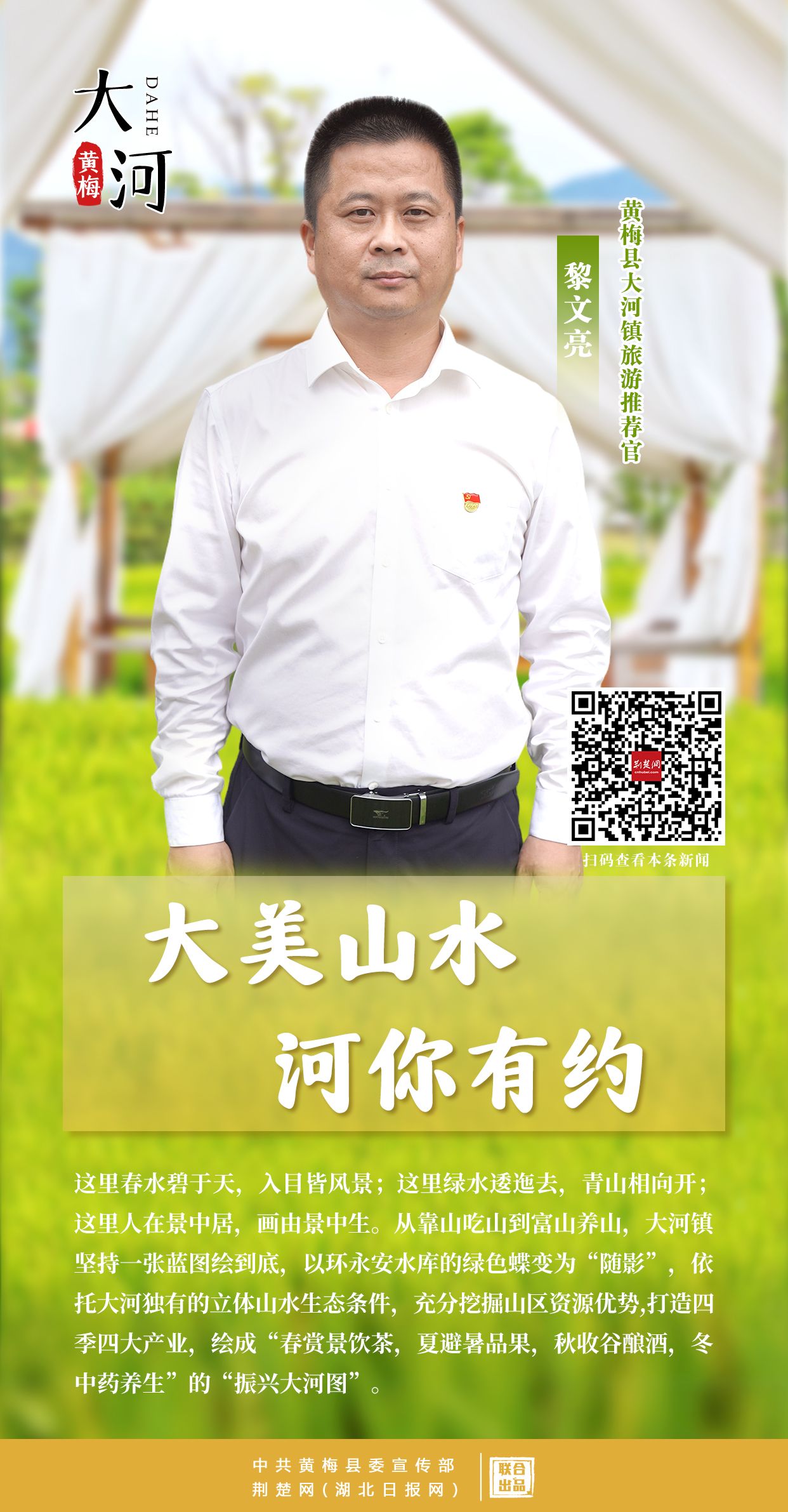 當(dāng)前,黃梅縣踔厲打造農(nóng)文旅融合開(kāi)放先導(dǎo)區(qū)。各美其美,美美與共。國(guó)慶前夕,停前鎮(zhèn)、大河鎮(zhèn)、下新鎮(zhèn)、五祖鎮(zhèn)、柳林鄉(xiāng)、杉木鄉(xiāng)6名鄉(xiāng)鎮(zhèn)黨委書記,紛紛當(dāng)起了旅游推薦官。