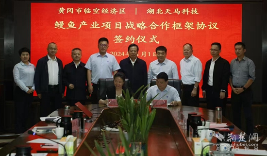 2024年11月1日,產(chǎn)業(yè)鏈領(lǐng)導(dǎo)工作小組趕赴福建與天馬科技集團洽談合作,并順利簽訂戰(zhàn)略合作協(xié)議。根據(jù)協(xié)議,天馬科技集團將在未來三至五年內(nèi)在黃岡繼續(xù)擴大養(yǎng)殖規(guī)模,在現(xiàn)有基礎(chǔ)上擴大一倍,屆時在黃岡總投資將達到20億元,養(yǎng)殖面積超過兩千畝,年產(chǎn)鰻魚兩萬噸。同時,新建一家烤鰻加工廠,并積極對接花湖機場,讓活鰻直接上飛機出口。