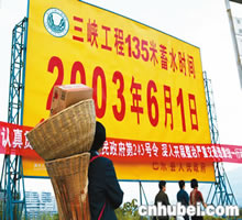 巨幅告示牌迎接三峽工程