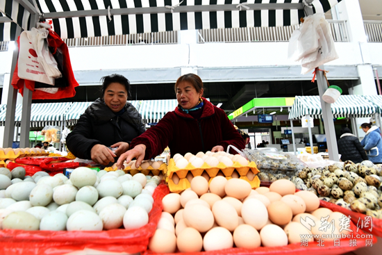 荊楚網(wǎng)(湖北日報網(wǎng))訊(通訊員劉建平 胡永志 付婧燁)“承東啟西匯南北,商貿(mào)富縣促發(fā)展”……1月3日,通城縣鄂南農(nóng)貿(mào)大市場大門口上的大紅對聯(lián)在冬日的暖陽下格外亮眼,斥資1.2億元打造的智慧農(nóng)貿(mào)大市場正式開門迎客。