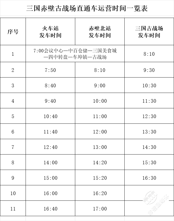 線路:抵站后可選擇旅游直通車或打車至三國(guó)赤壁古戰(zhàn)場(chǎng)