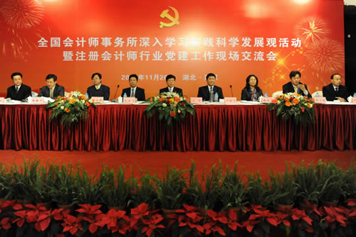 11月26日,財(cái)政部會(huì)計(jì)師事務(wù)所深入學(xué)習(xí)實(shí)踐科學(xué)發(fā)展觀活動(dòng)指導(dǎo)小組、中國注冊會(huì)計(jì)師行業(yè)黨委在湖北省武漢市召開全國會(huì)計(jì)師事務(wù)所深入學(xué)習(xí)實(shí)踐科學(xué)發(fā)展觀活動(dòng)暨注冊會(huì)計(jì)師行業(yè)黨建工作現(xiàn)場交流會(huì),深入學(xué)習(xí)貫徹黨的十七屆四中全會(huì)精神,總結(jié)各省市區(qū)會(huì)計(jì)師事務(wù)所學(xué)習(xí)實(shí)踐活動(dòng)和行業(yè)黨建工作做法,交流經(jīng)驗(yàn),探討方法,凝聚共識(shí),更加扎實(shí)有效地推進(jìn)會(huì)計(jì)師事務(wù)所學(xué)習(xí)實(shí)踐活動(dòng)和行業(yè)黨建工作。財(cái)政部黨組成員、副部長、財(cái)政部會(huì)計(jì)師事務(wù)所深入學(xué)習(xí)實(shí)踐科學(xué)發(fā)展觀活動(dòng)指導(dǎo)小組副組長、中國注冊會(huì)計(jì)師行業(yè)黨委書記王軍,湖北省委常委、常務(wù)副省長李憲生出席會(huì)議并講話。