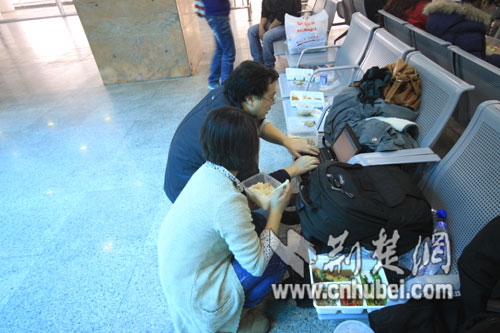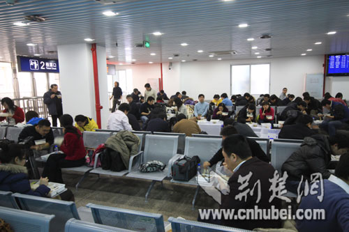 媒體記者們中午在廣州北站候車廳休息(荊楚網(wǎng)特約記者周志浩攝影)