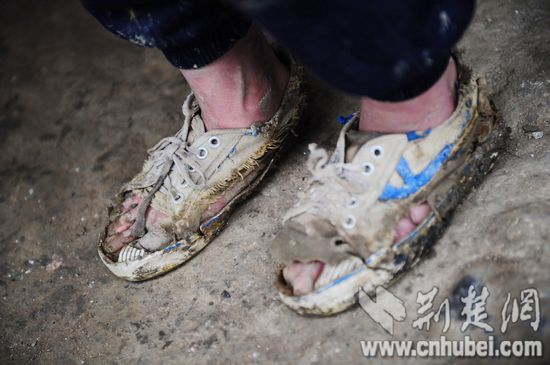 在大方縣興隆村,小女孩高燕穿的球鞋讓人觸目驚心。五個(gè)腳趾全露在外面,鞋面與鞋底僅靠幾根棉絲相連,高燕一直都是靠這雙鞋爬山上學(xué),到了學(xué)校再換上好一點(diǎn)的球鞋。