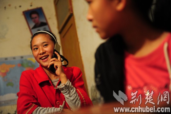 圖為:王玉蘭給老師曹建強打電話。