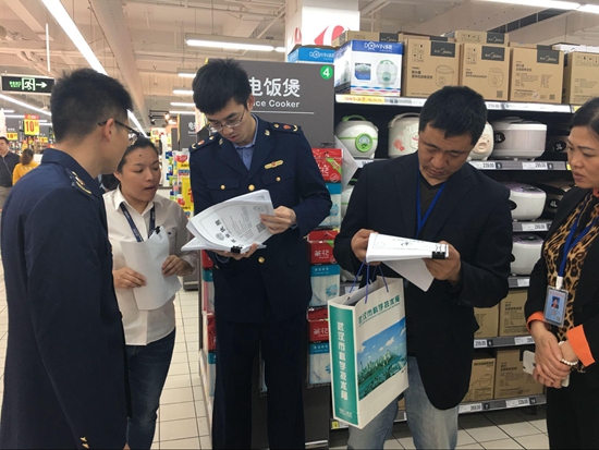 此次聯(lián)合執(zhí)法檢查重點是對武漢光谷步行街家樂福等商家涉及知識產(chǎn)權(quán)商品,執(zhí)法過程中,執(zhí)法人員嚴(yán)肅著裝、向商家出示執(zhí)法證件、移交了相應(yīng)的執(zhí)法文書;執(zhí)法人員各司其職開展執(zhí)法檢查,翻閱了商家落實商品上架知識產(chǎn)權(quán)登記制度相關(guān)資料,并針對部分登記備案的專利產(chǎn)品進行核實檢查,在檢查的同時,執(zhí)法人員向商場及超市負責(zé)人宣傳專利、商標(biāo)、質(zhì)量、食品等相關(guān)法規(guī)知識,講授如何識別專利產(chǎn)品及標(biāo)識,建議商場在進貨時對有知識產(chǎn)權(quán)標(biāo)識的產(chǎn)品要注意核實相關(guān)權(quán)利情況,并進一步健全知識產(chǎn)權(quán)保護相關(guān)管理制度。此次聯(lián)合執(zhí)法活動共發(fā)放宣傳資料200余份,檢查商品千余件,查處問題商品3件。通過執(zhí)法檢查和宣傳,增強了經(jīng)營者的知識產(chǎn)權(quán)保護意識,規(guī)范了市場經(jīng)營秩序,努力營造了保護知識產(chǎn)權(quán)的良好氛圍。