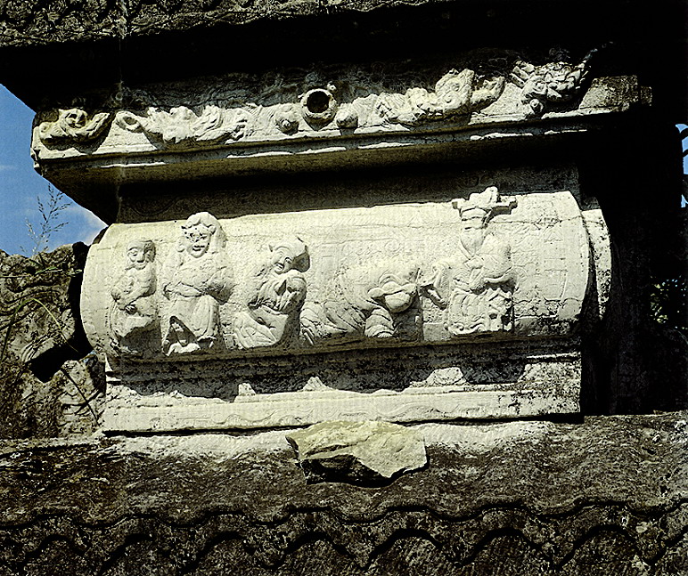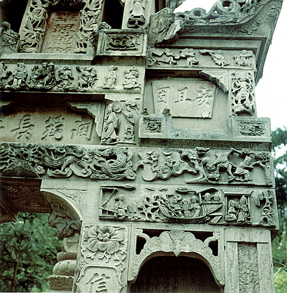 湖北省北有秦嶺東沿的武當山、大別山、桐柏山,西接云貴高原,東南為幕阜山脈環(huán)繞,中部是寬闊的江漢平原。山區(qū)產石料,為石雕提供了豐富的用材;平原燒泥土制磚瓦,鐫以圖案美化建筑。民間石雕、磚雕分布,與地形大體一致。?凳耦}材廣泛,大致分為日常生活、倫理教化、神話傳說、戲文故事、花鳥蟲魚、書文楹聯(lián)六類。